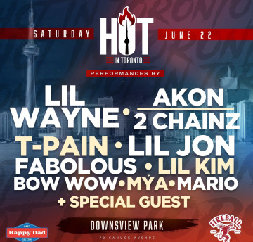 JUST ANNOUNCED: AKON, 2 CHAINZ, T-PAIN, FABOLOUS, BOW WOW, The three lil's, Lil Wayne, Lil Kim, and Lil Jon + MANY MORE to be announced will all be gracing the stage with their electrifying performances. So get ready to dance and sing along to all the hits! With such an amazing lineup, affordable tickets, and an all-inclusive experience, 'Hot in Toronto' Music Festival is set to be the highlight event of the year. Don't miss out on the opportunity to be a part of this unforgettable music experience. Get your tickets now and prepare for an epic day filled with great music, good vibes, and memories that will last a lifetime. See you at the festival!